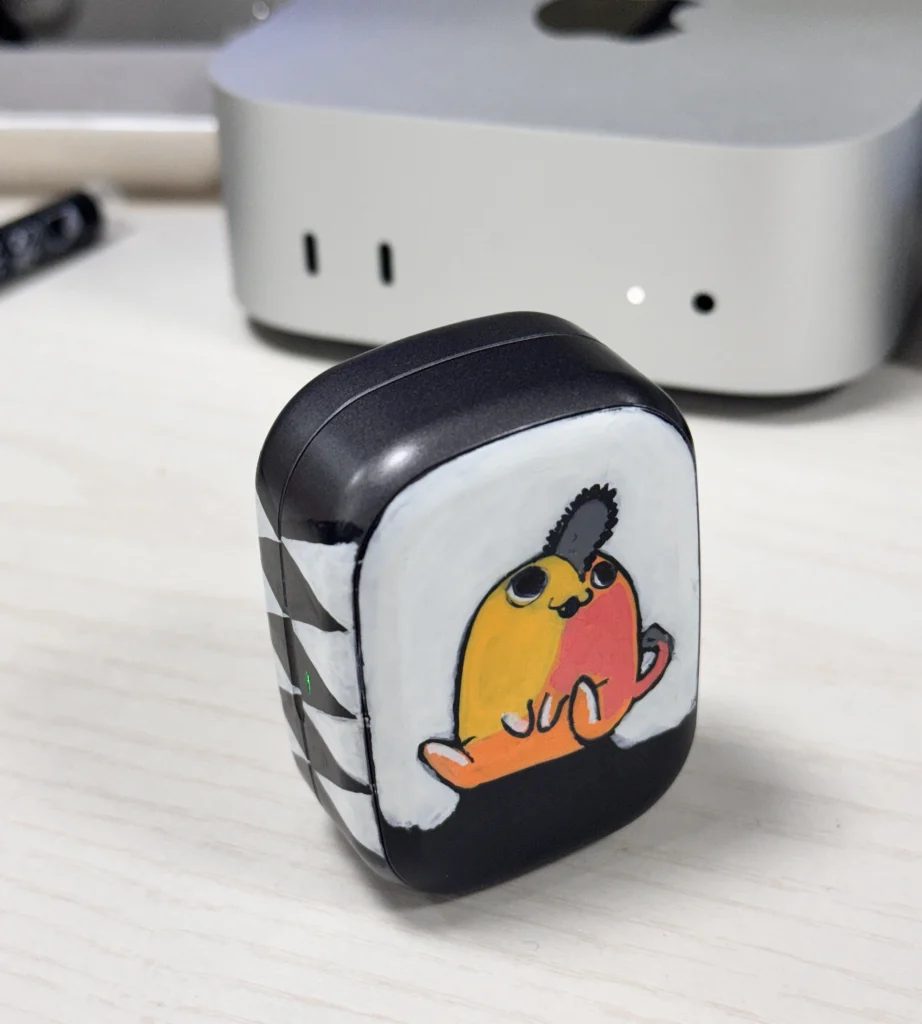 아크릴 마카를 샀다. 물건 위에 그림을 그려보고 싶어서였다. 생각보다 색깔이 매끈하게 칠해지지는 않는데 여러번 덧칠을 하면 나아진다고 한다. 하지만 귀찮아서 그러고 싶지는 않음. (이어폰 케이스 위에 그려봤다)