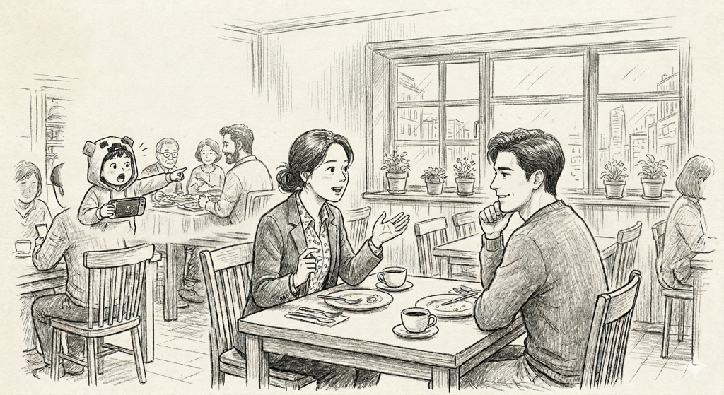 부모님과 점심 식사를 하러 갔다가 그 친구와 아이를 만난 적이 있었지.
